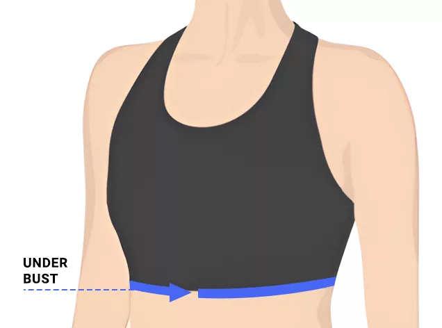 - 2. لقياس أسفل الصدر، لفي شريط القياس حول القفص الصدري مباشرة وتحت الصدر بشكل متساوٍ.
