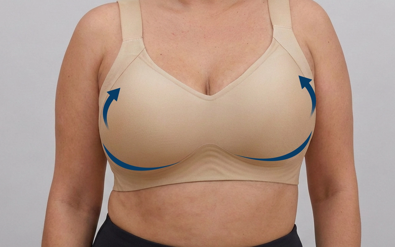- 1. قبل البدء، ارتدي حمالة صدر بدون بطانة تدعم شكلك الطبيعي — لا ترتدي حمالة صدر رياضية أو مبطنة.