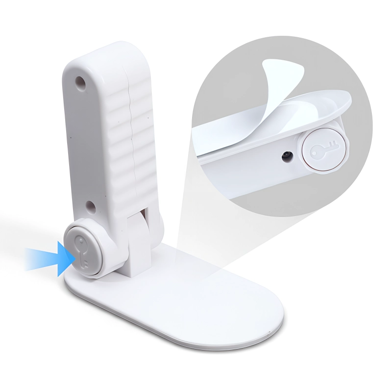 لاصق قوي يثبت بإحكام دون الحاجة للحفر أو الأدوات. تظل الأبواب بدون أي أثر بعد إزالة القفل.