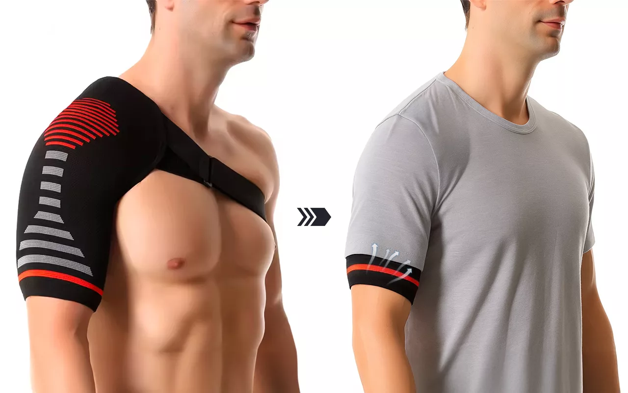 اقترح الطبيب دعامة لدعم أوتار الكتف. هذا الداعم يناسبني تحت السترة، لا أحد يلاحظه، وأستطيع أخيرًا رفع البقالة مجددًا.