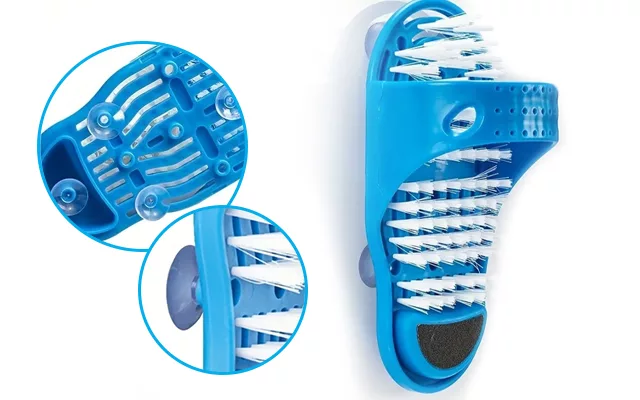 اشعر بالانتعاش بعد كل استحمام. فرشاة تنظيف القدمين من تزيل الجلد الخشن دون انحناء أو انزلاق. تقوم الشعيرات بتدليك وتنظيف القدمين بلطف، مما يجعلها ناعمة وصحية. أكواب الشفط الموثوقة تثبت الصندل بقوة على أرضية الدش.