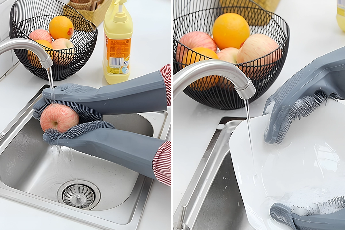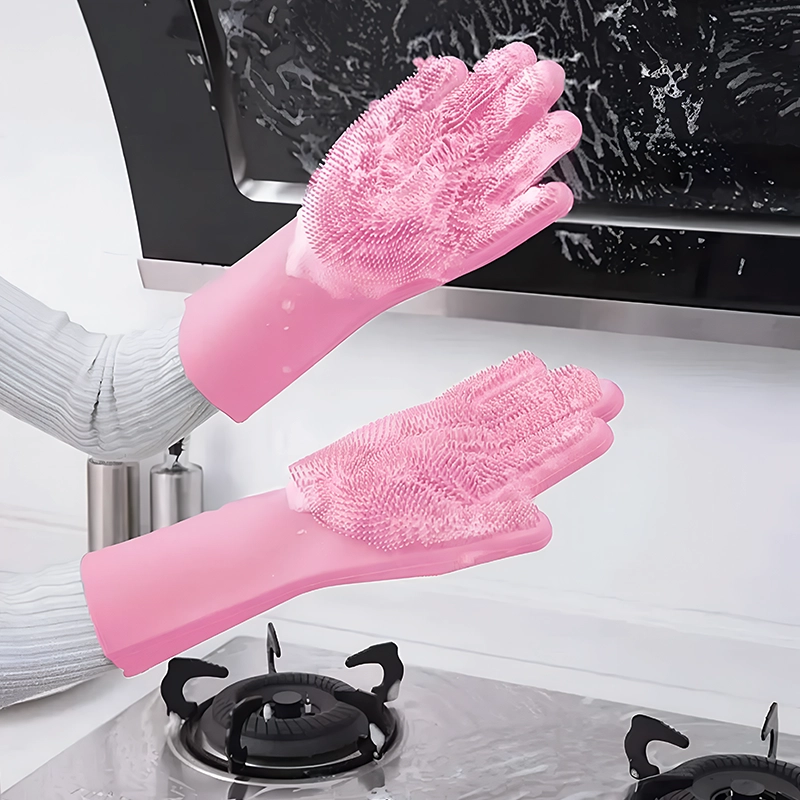 رائعة ليس فقط للأطباق بل أيضًا لتنظيف الحوض وبلاط الحمام. القفازات تُغسل بسهولة شديدة.