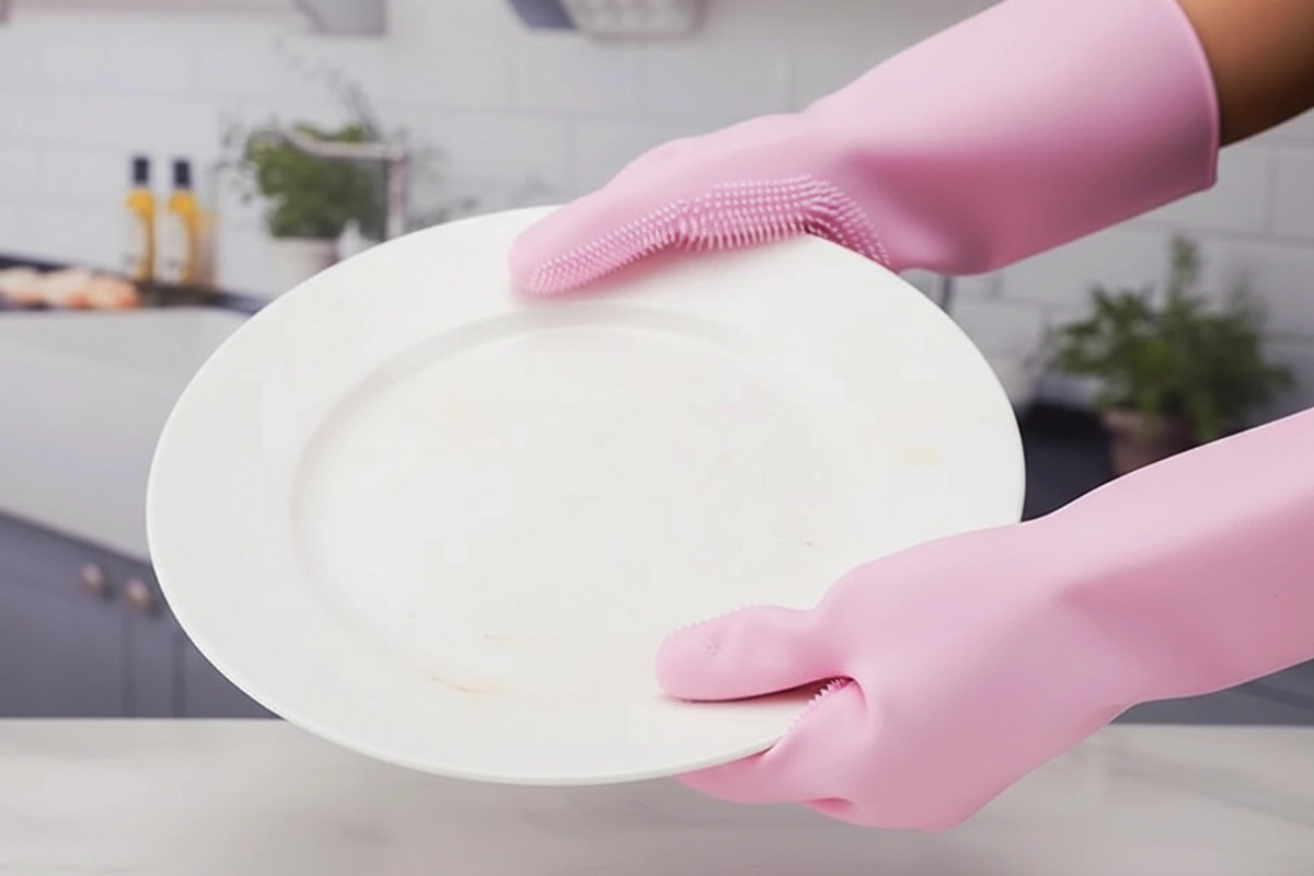 قفازات غسل الصحون تنظف الزجاج والبلاط والمعادن والبلاستيك دون ترك خدوش.