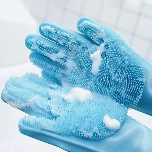هذه القفازات المزودة بفرشاة تزيل الحاجة إلى فرش أو إسفنج منفصل، مما يوفر عليك الوقت والجهد. تزيل بقايا الطعام، وبقع الصابون، والأوساخ في ثوانٍ.