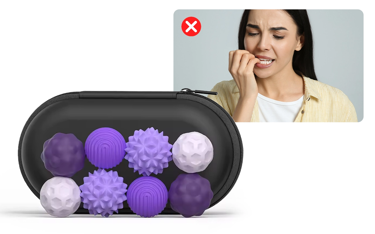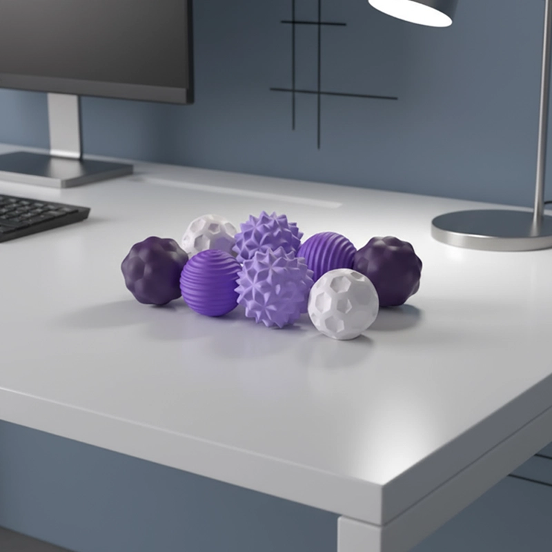 احصل على راحة من اليدين القلقتين خلال أيامك المزدحمة أو الاجتماعات. توفر كرات أورتيكس راحة مهدئة وتحافظ على ثبات ذهنك. كل سطح ملمسي يوفر إحساسًا مرضيًا ويساعدك على الاسترخاء.