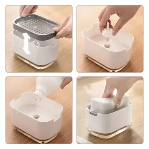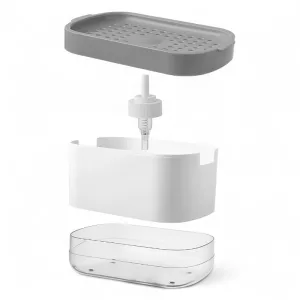 حافظ على جفاف سطح الطاولة وقلل الفوضى باستخدام حامل الإسفنج الذكي من . يقوم بتوزيع الصابون بضغطة واحدة ويقلل من وقت غسيل الأطباق إلى النصف.