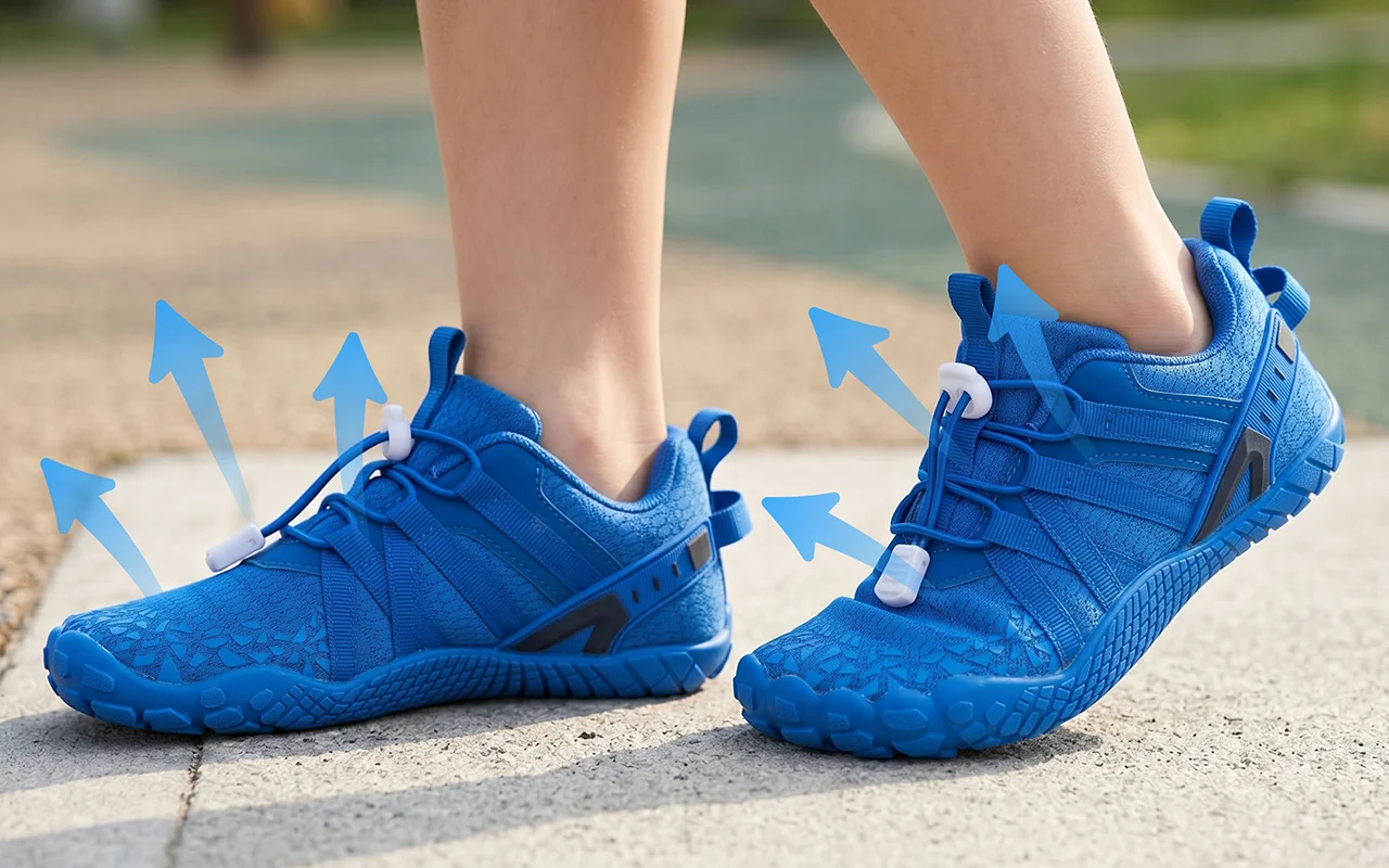 الأجزاء العلوية المصنوعة من الشبك تسمح بتدفق الهواء، مما يحافظ على انتعاش القدمين لساعات. لا مزيد من التعرق المزعج بعد الجري أو اللعب في الهواء الطلق.
