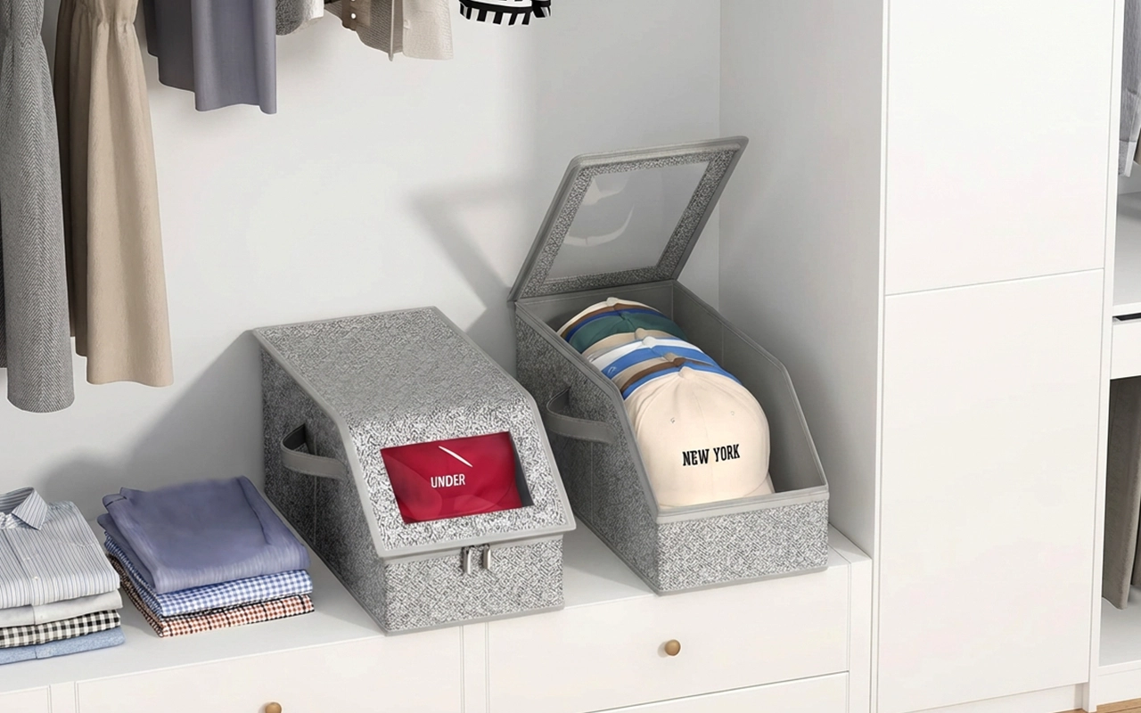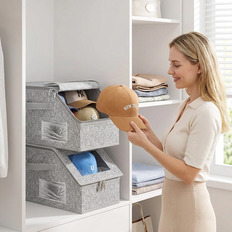 أحب أنني أستطيع رؤية ما بداخلها دون فتح أي شيء. تبقى قبعاتي خالية من الغبار ونظيفة، كما أصبح لدي مساحة إضافية لأشياء أخرى على الرفوف.