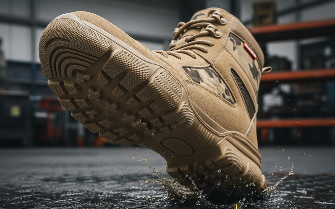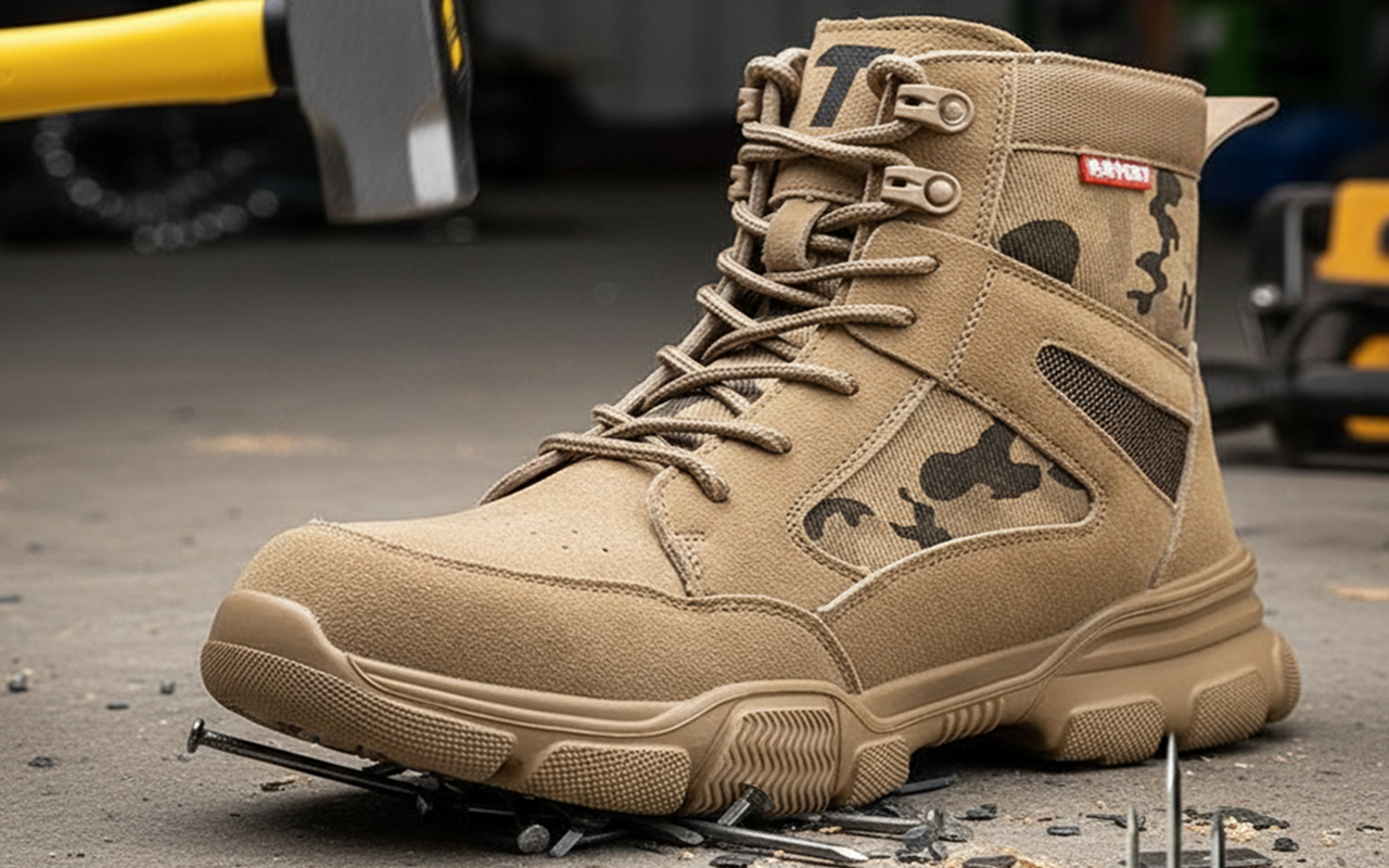 حماية مدعمة بالصلب ضد الصدمات الحادة أو السقوط الثقيل. نعل قوي يقاوم الاختراق من المسامير أو الحطام بسهولة.