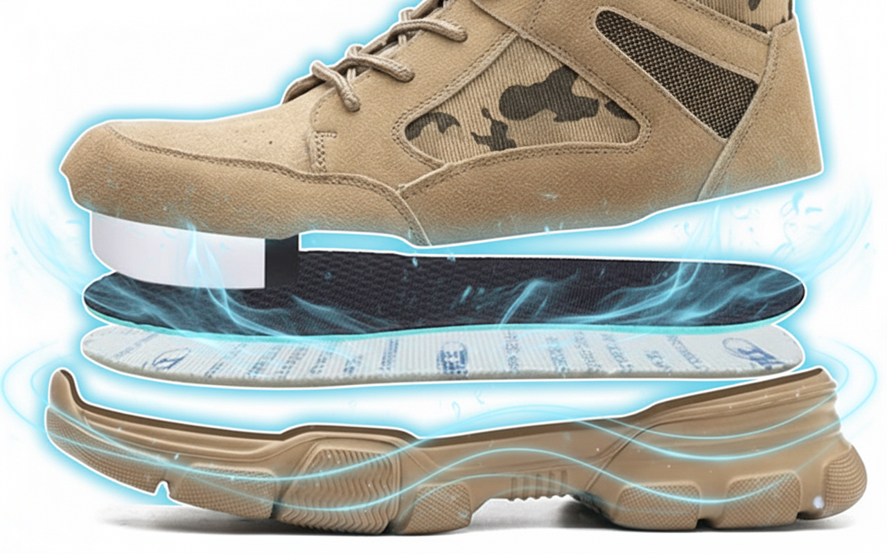 المواد المرنة تتكيف مع كل حركة دون تيبُس. بطانة قابلة للتهوية تقلل التعرق وتحافظ على انتعاش القدم لساعات.