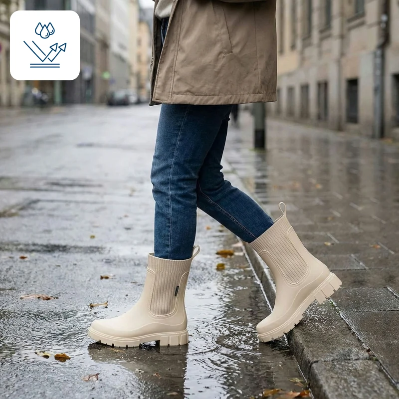 المطر يبقى بالخارج بينما تظل قدماك دافئتين ومنتعشتين. تجول في المدينة حتى عندما تغطي البرك الشوارع.
