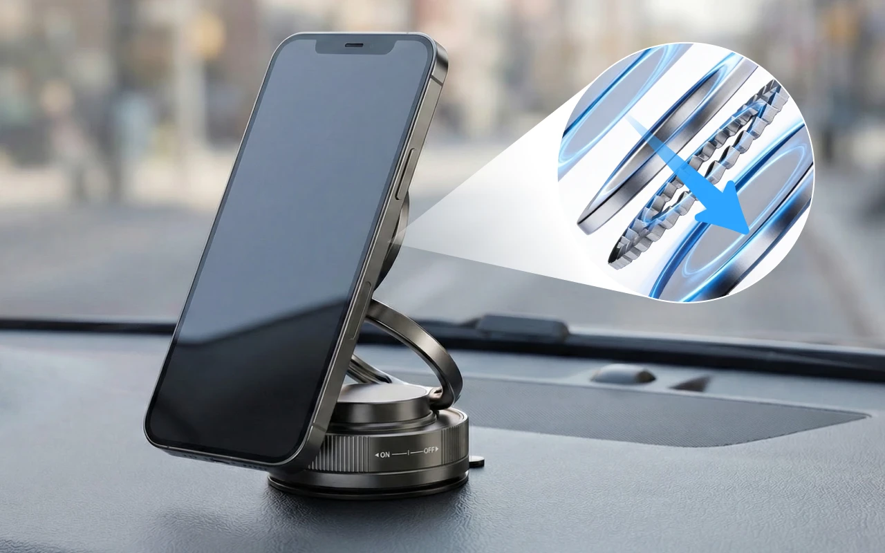 حافظ على استقرار جهازك المحمول أثناء كل رحلة. لا مزيد من البحث عن هاتفك الذكي أو فقدان الاتجاهات. حامل الهاتف المغناطيسي من أورثوركس يثبت جهازك بقوة، حتى فوق المطبات. استمتع بسهولة الوصول دون تشتت أو قلق.