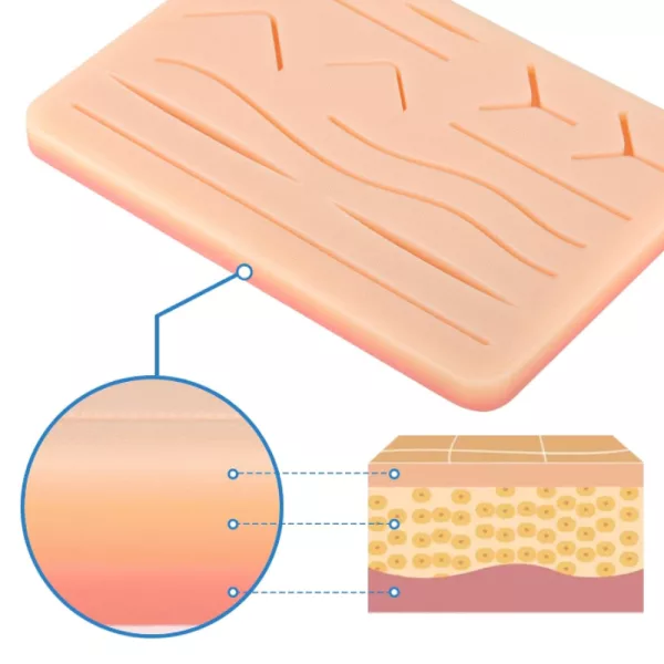 تُحاكي الوسادة الأنسجة البشرية الحقيقية، حيث تقدم طبقات من الجلد والدهون والعضلات. يمكن ممارسة تقنيات مختلفة على أنواع مختلفة من الجروح لتحقيق تعلم شامل.