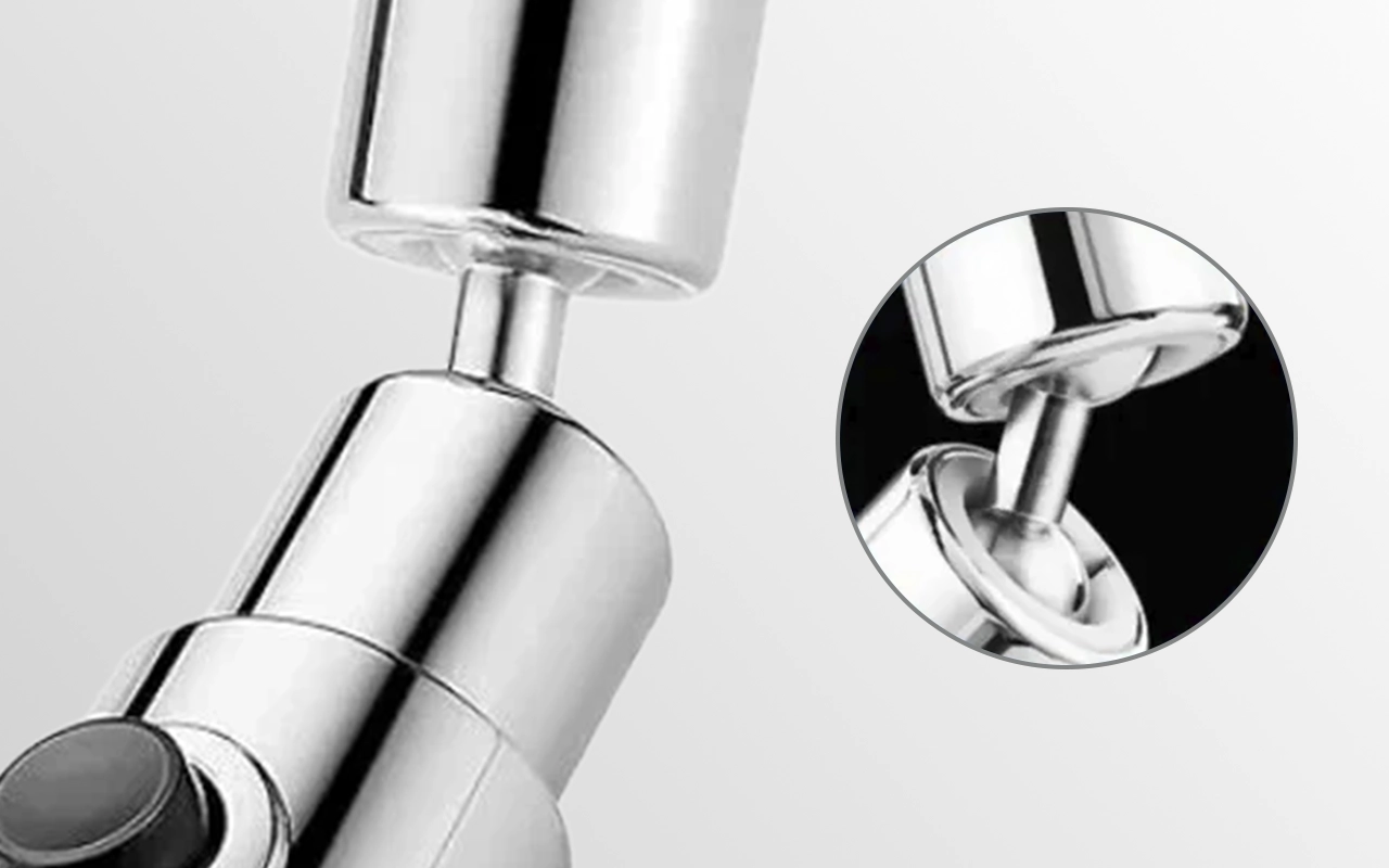 المفاصل الدوارة المزدوجة تتيح لك توجيه الماء لأي مكان بسرعة. لا يتم تجاهل أي بقعة، حتى حول الزواياعبة أو الأواني العميقة.