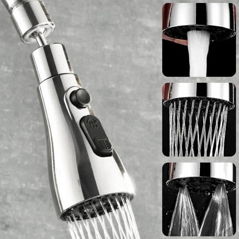 أحب مدى سهولة تحريك الرشاش حول الحوض. أستطيع شطف الصحون، تنظيف الخضار، وهناك بالكاد أي تطاير ماء.