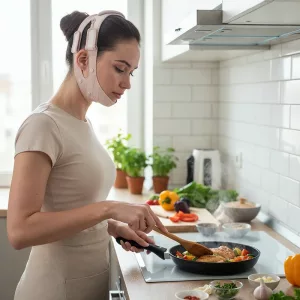 أرتدي حزام الرفع هذا أثناء القراءة ليلاً، وخط الفك لدي يبدو بالفعل أكثر حدة. السيليكون ناعم، لا يقرص، وخدودي أصبحت أكثر شدًا.