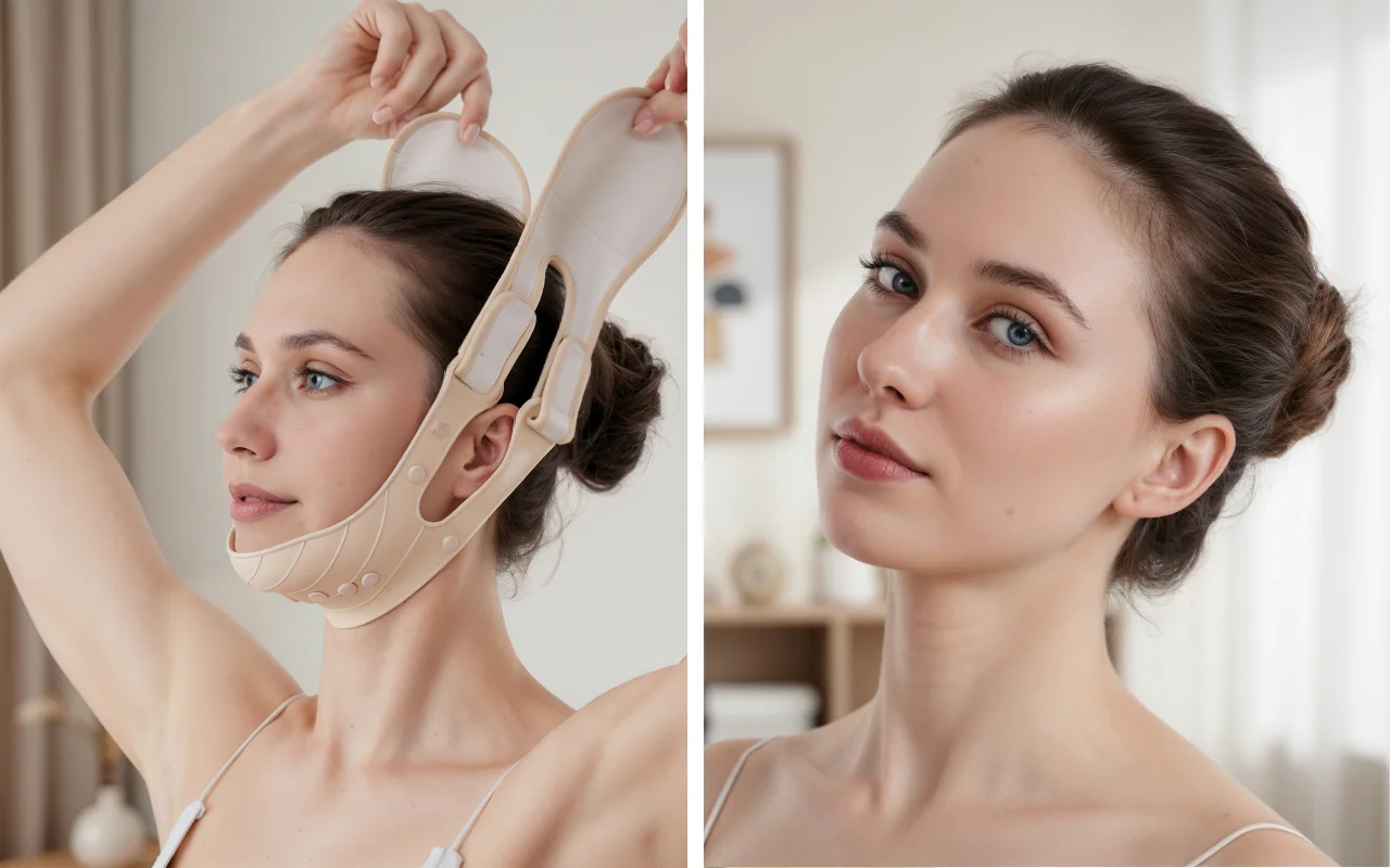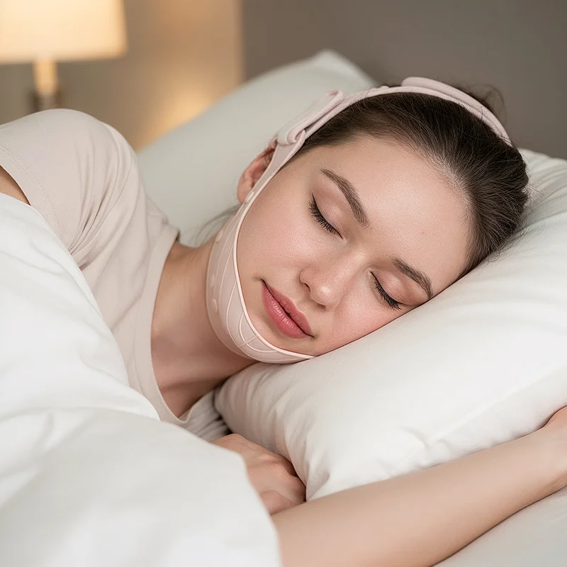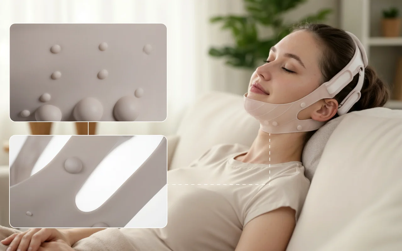 حزام مريح، يحتضن الفك ويجعل وجهي يبدو أنحف.