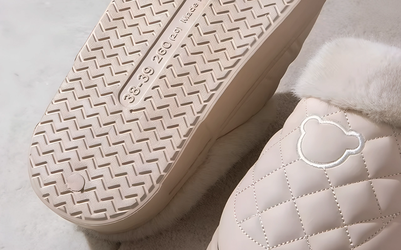النعل المزخرف يمسك الأرض ويقلل من مخاطر الانزلاق. تحرك بثقة بين الغرف، حتى على الأسطح الناعمة.