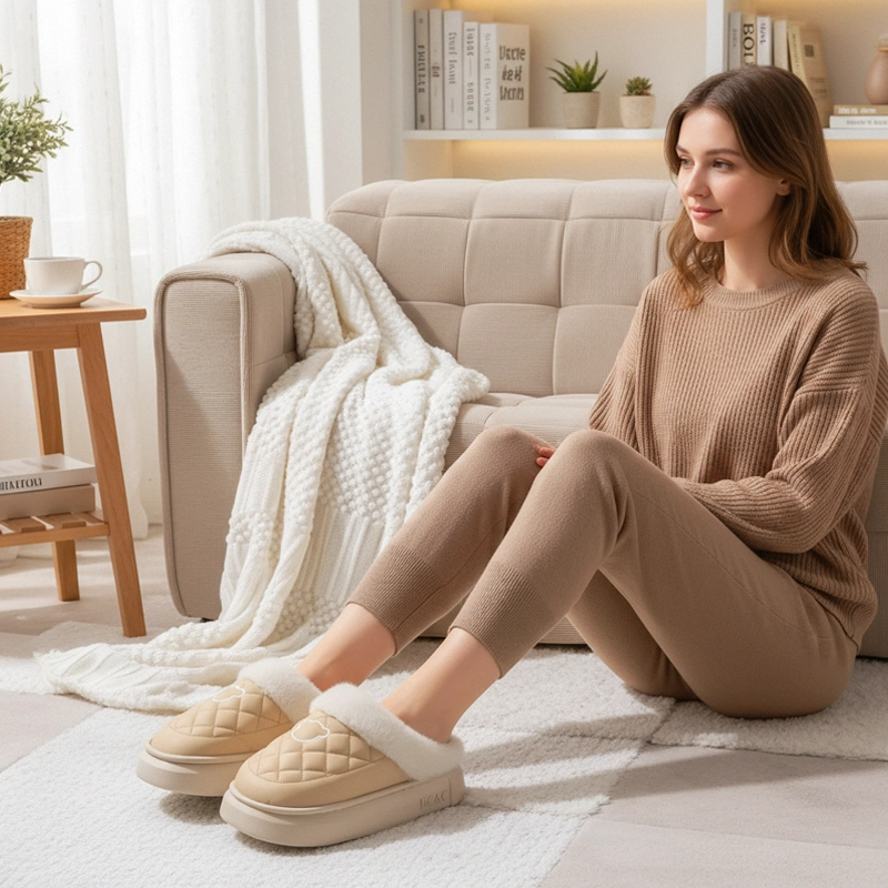 ارتدِ الدفء كل صباح واستمتع بالدعم الناعم. دلل قدميك المتعبة بنعومة فاخرة لا تشعر بثقلها أبداً. نعل مقاوم للماء ومتين يحافظ على ثبات خطواتك وجفافها بالداخل. استرخِ وأنت تعلم أن أصابع قدميك تبقى دافئة في أبرد الأيام.