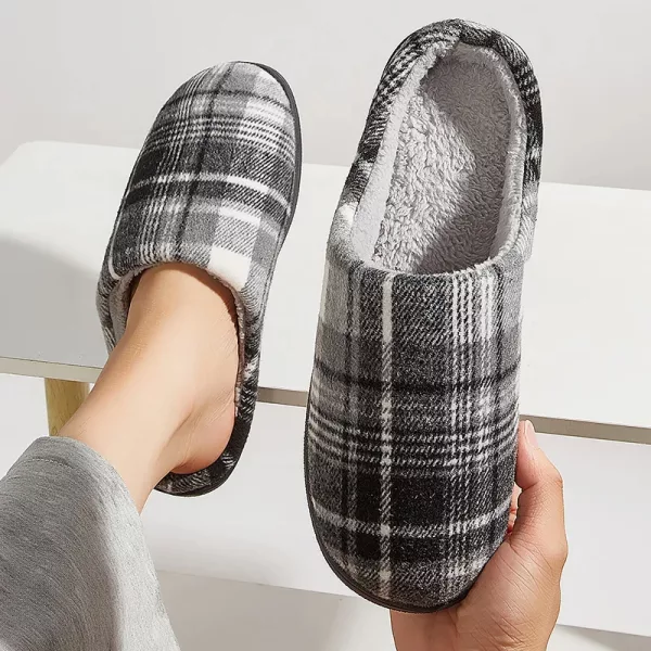 إسفنج الذاكرة يتشكل بشكل مثالي حول قدمي. أحب كيف يبدو النقش الدافئ، ولا تسقط النعال أبدًا أثناء التجول.