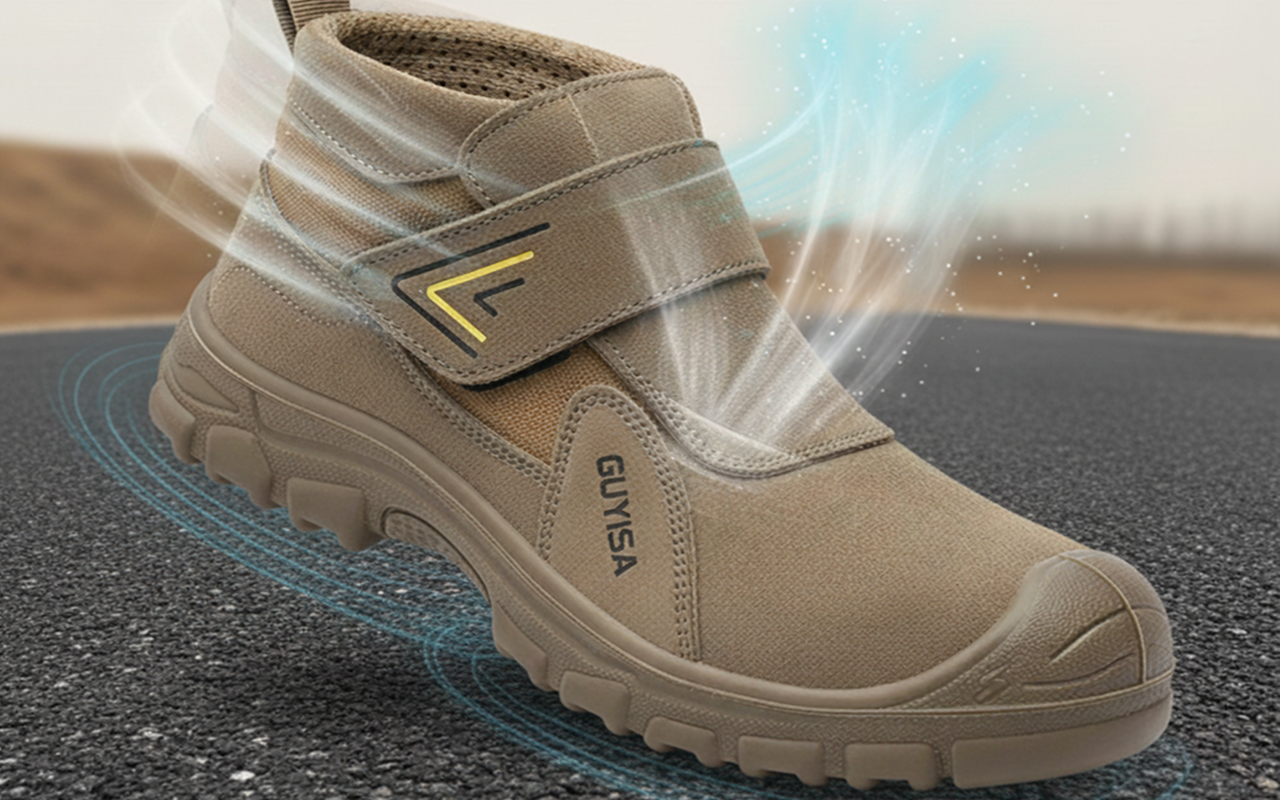 البطانة القابلة للتنفس تبقي القدمين جافتين لساعات طويلة من العمل. النعال المرنة تمتص الحركة وتقلل من التعب بسرعة.