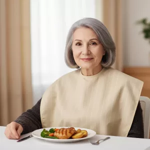 هذه المريلة تحافظ على جفاف قمصاني وخلوها من البقع عندما أتناول الحساء. تشعرني بالنعومة على رقبتي ولا تزعجني أبداً حتى بعد ساعات طويلة.