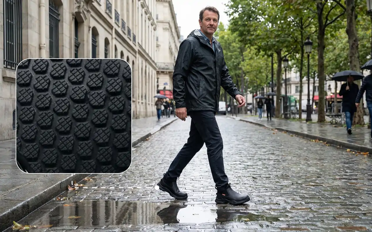 الأرضيات المبللة أو الانسكابات لن تسبب سقوطًا مفاجئًا داخل المنزل. النعل الموثوق يساعد على منع الحوادث في العمل أو المنزل.