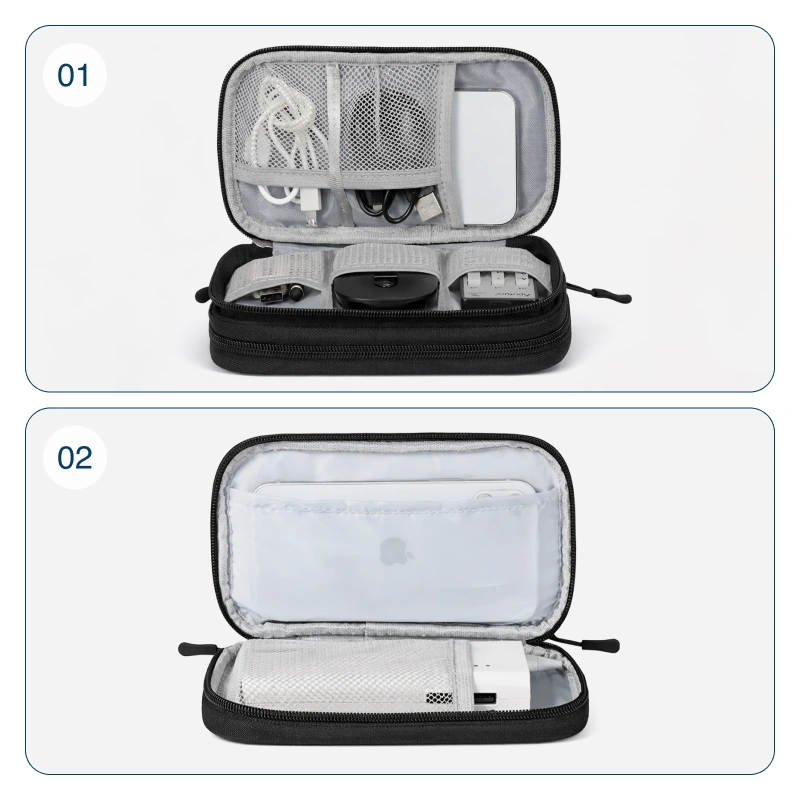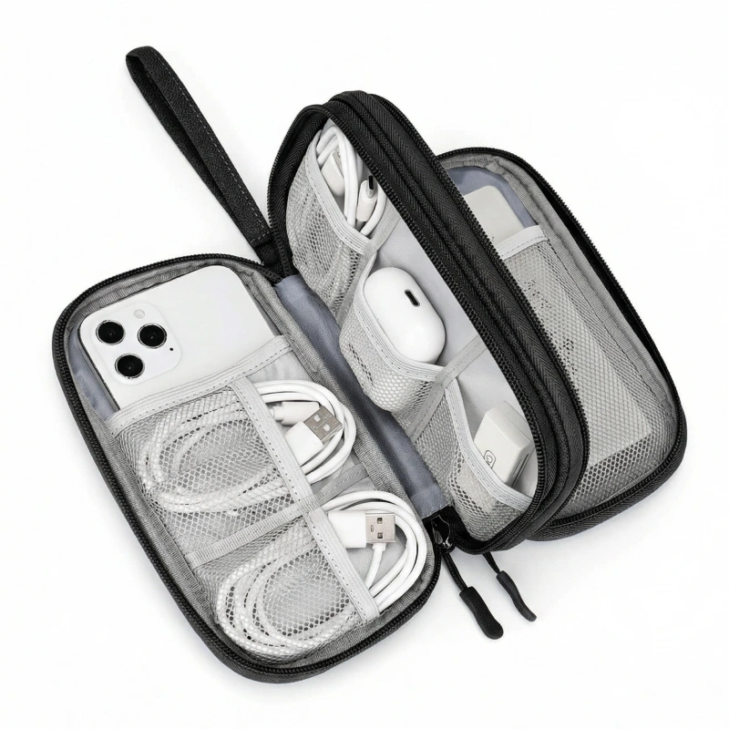 تشابك الأسلاك يبطئك ويضيع وقتك. حقيبة أورتوريكس تُبقي الأجهزة مرتبة وسهلة الوصول. خذها معك في الرحلات، المدرسة، أو العمل. استمتع براحة البال مع العلم أن الأساسيات محمية دائمًا.