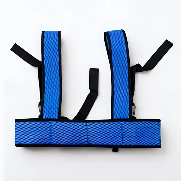 تُبقي أحزمة الكتف الأشخاص مستقيمين وثابتين أثناء الاستخدام. يساعد ذلك في منع الانزلاق الخطير أو الميل للأمام على الكرسي.