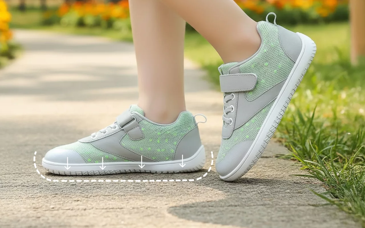 تمتص أحذية الحافية الصدمات، مما يقلل الضغط على الكعبين والأصابع. ستبقي الصغار مرتاحين أثناء المشي، حتى على الأرصفة الصلبة.