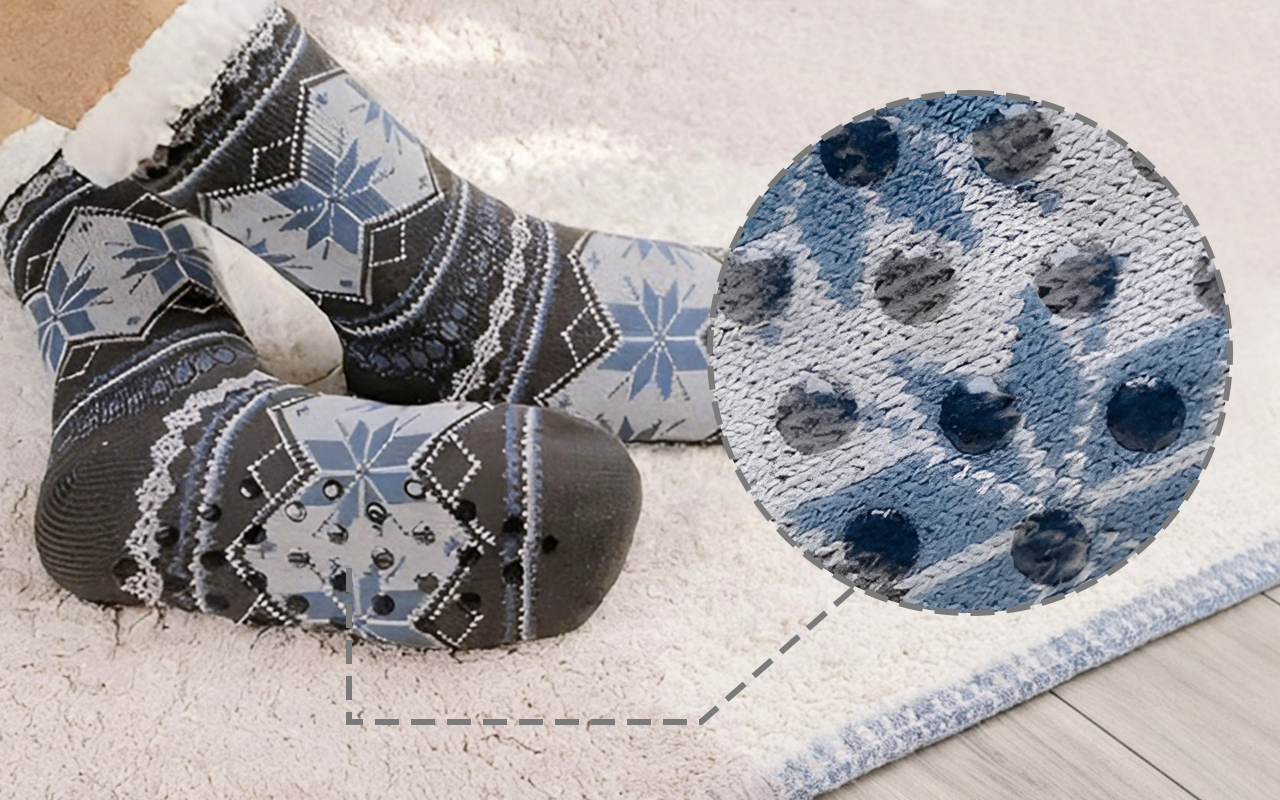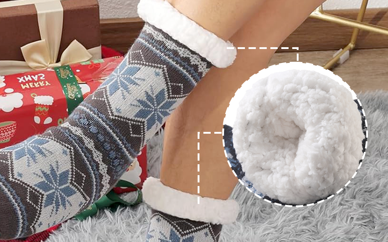 هذه الجوارب الناعمة تبقي قدمي دافئة جداً حتى في أبرد الليالي! أحب المشي على أرضية البلاط دون أن أنزلق في كل مكان. مريحة جداً!