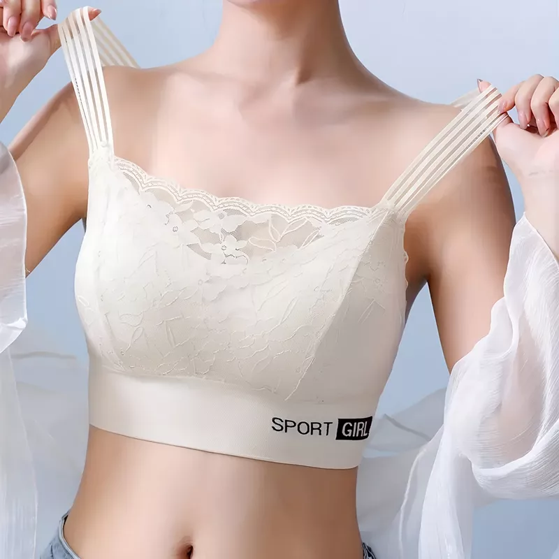 أرتدي هذه الحمالة كل صباح عندما أذهب للركض. تبقى ثابتة ولا تضغط في أي مكان. الدانتيل لمسة لطيفة ويشعر بالنعومة على بشرتي.