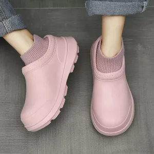هذه الأحذية سهلة الارتداء مثالية للأيام الممطرة. التصميم المقاوم للم يحافظ على قدمي جافة، والدعم المبطن هو بالضبط ما أحتاجه للراحة طوال اليوم.