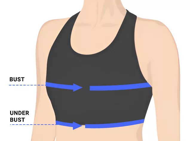 - 2. لقياس محيط ما تحت الصدر، لفي شريط القياس حول القفص الصدري مباشرة وبشكل متساوٍ أسفل الصدر.