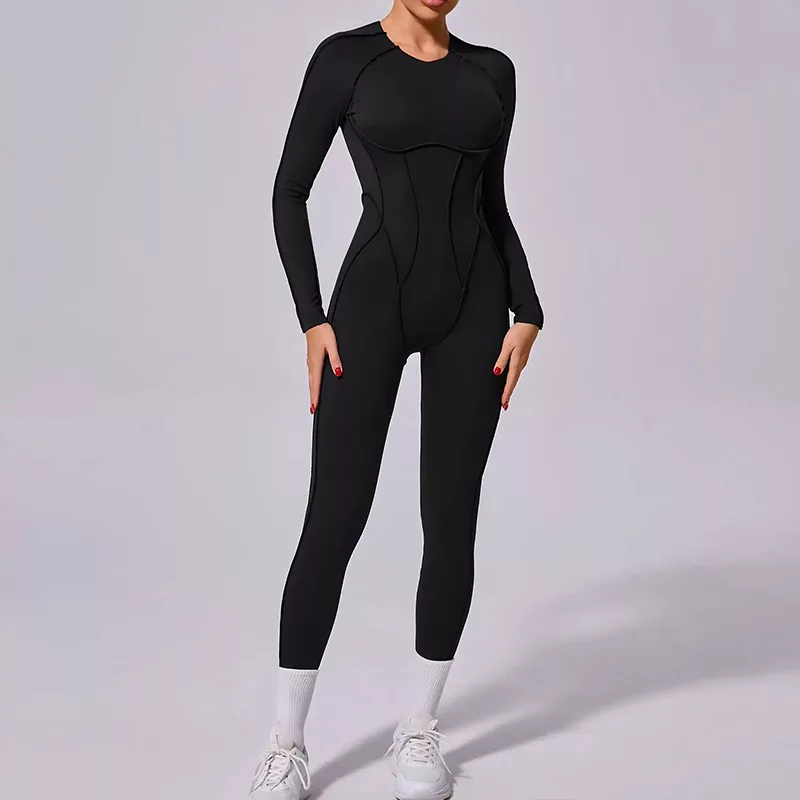 ارتداء هذا البدلة مريح جدًا أثناء اليوغا والكارديو. منحنياتي تبدو رائعة، أحب الظهر المفتوح والخياطة الناعمة. لا يوجد احتكاك على الإطلاق!