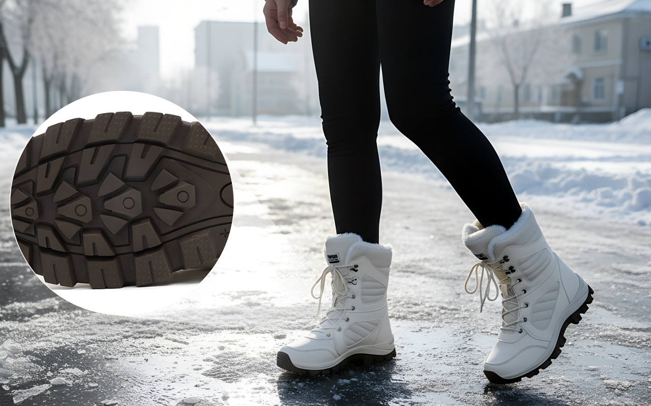ارتداء هذه الأحذية في الثلج رائع! قدماي تبقيان دافئتين وجافتين تماماً، ويمكنني المشي حيثما أريد دون أن أنزلق ولو مرة واحدة.