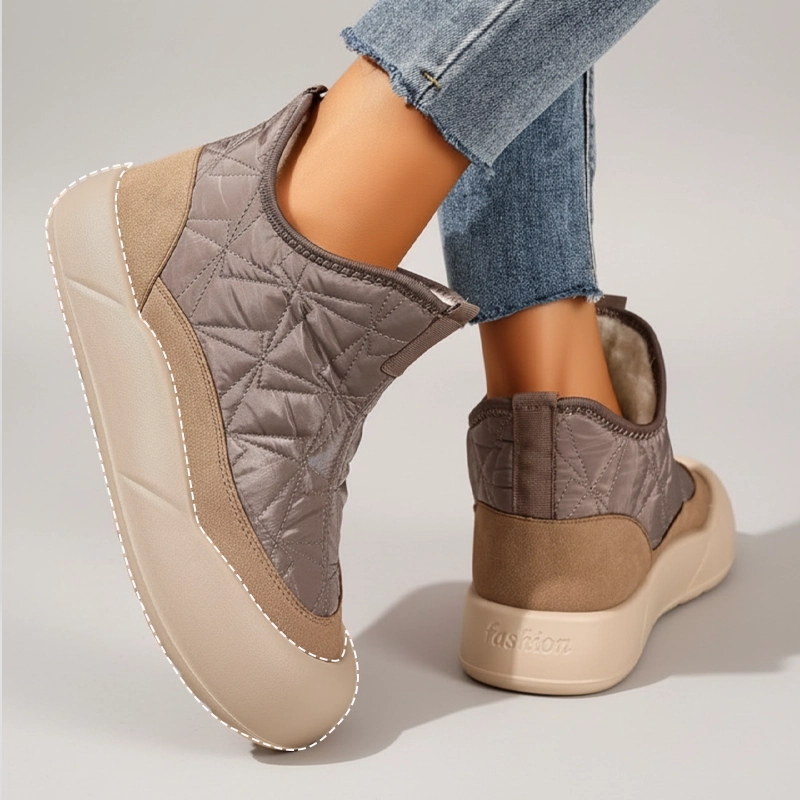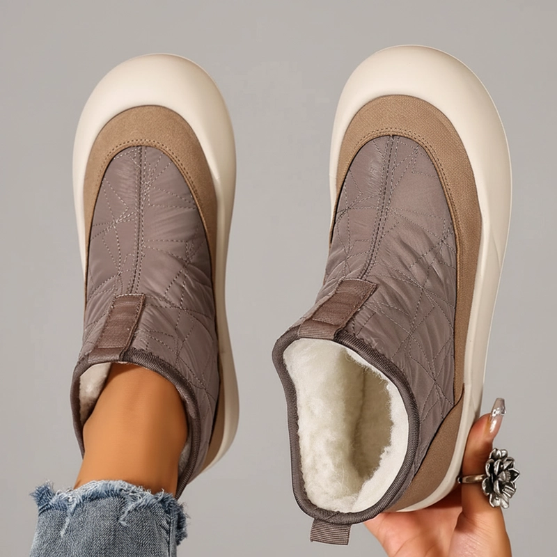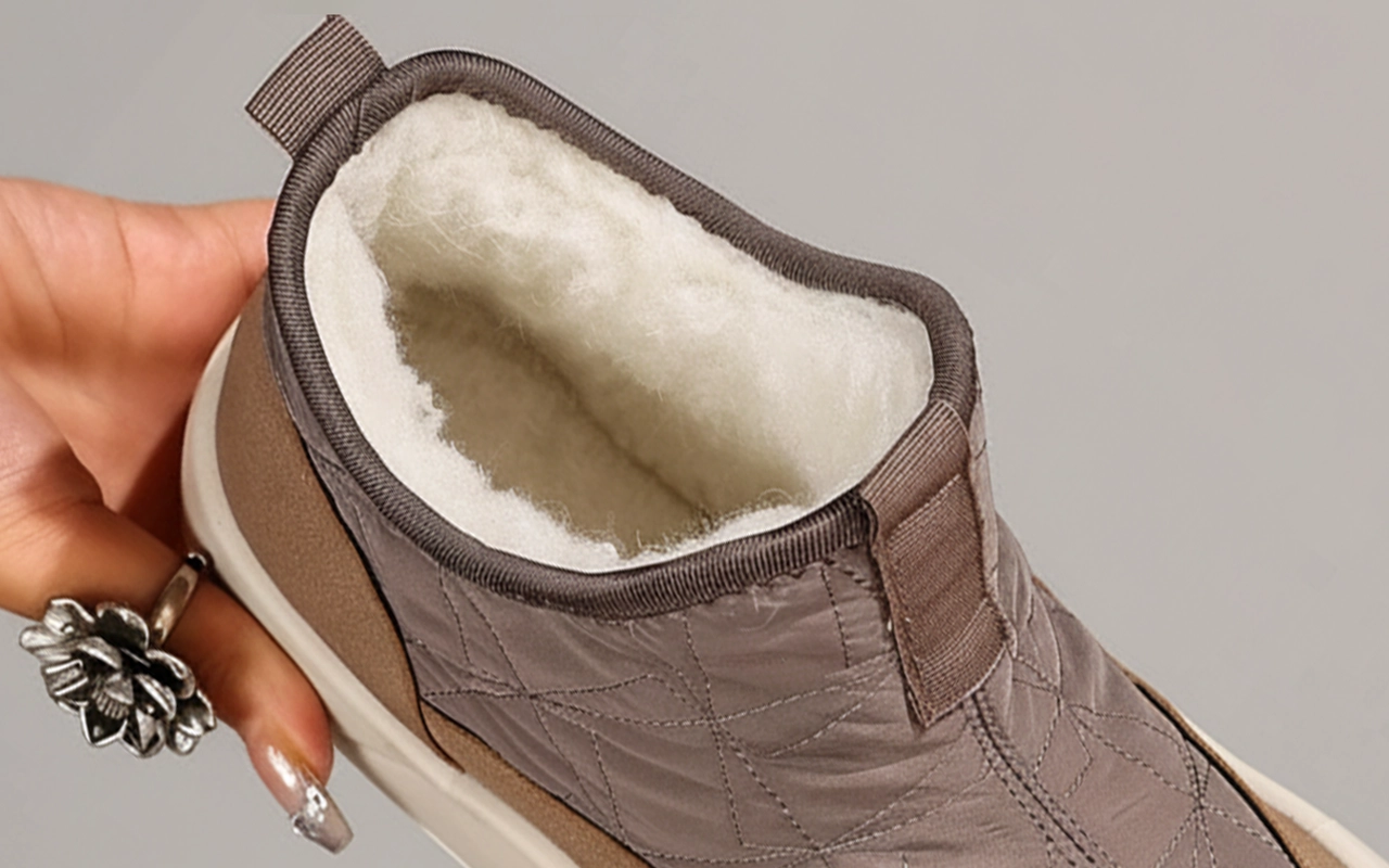 دافئة جداً! أكره ربط الأربطة في الشتاء، لذلك أنا متحمسة أن هذه الأحذية تلبس بسهولة. قبضة رائعة عندما أمشي مع أولادي إلى المدرسة.