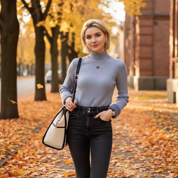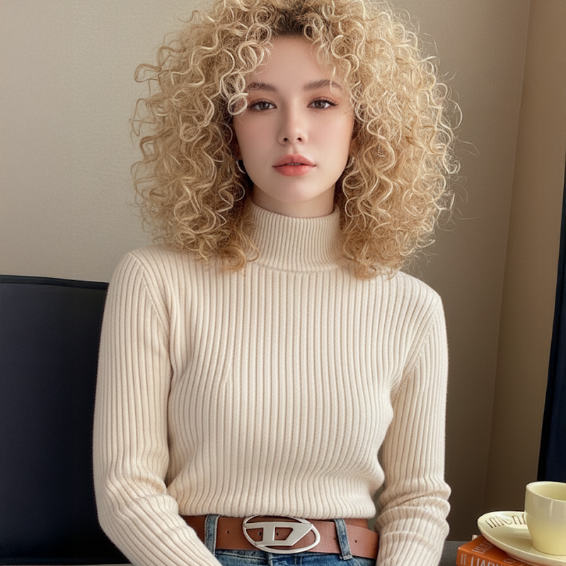 لم أكن متأكدة بشأن الياقة، لكنها مريحة للغاية! دافئة ومرنة، وبطانتها ناعمة. تبدو رائعة ومثبتة داخل البنطال.
