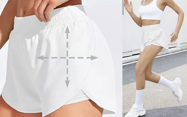 شورت مرن للغاية! أستطيع القرفصاء، التمدد، والقفز بلا مشاكل. رباط الخصر يبقيها في مكانها أيضاً.