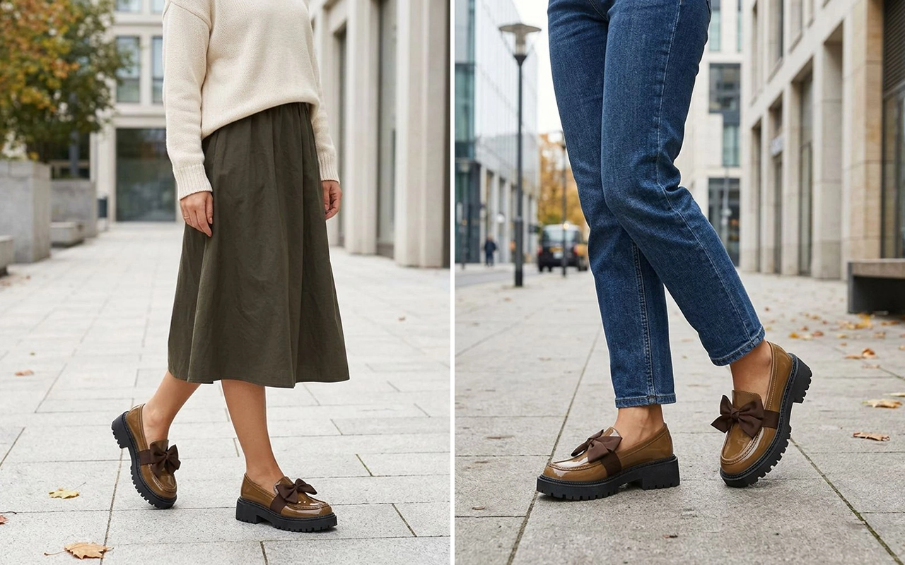 القَصَّة الكلاسيكية البريطانية تتناسق بشكل جميل مع الجينز والتنانير والفساتين. منصات أورتوركس تنتقل بسهولة من المحاضرات إلى العشاء دون الحاجة لتغيير الإطلالة.