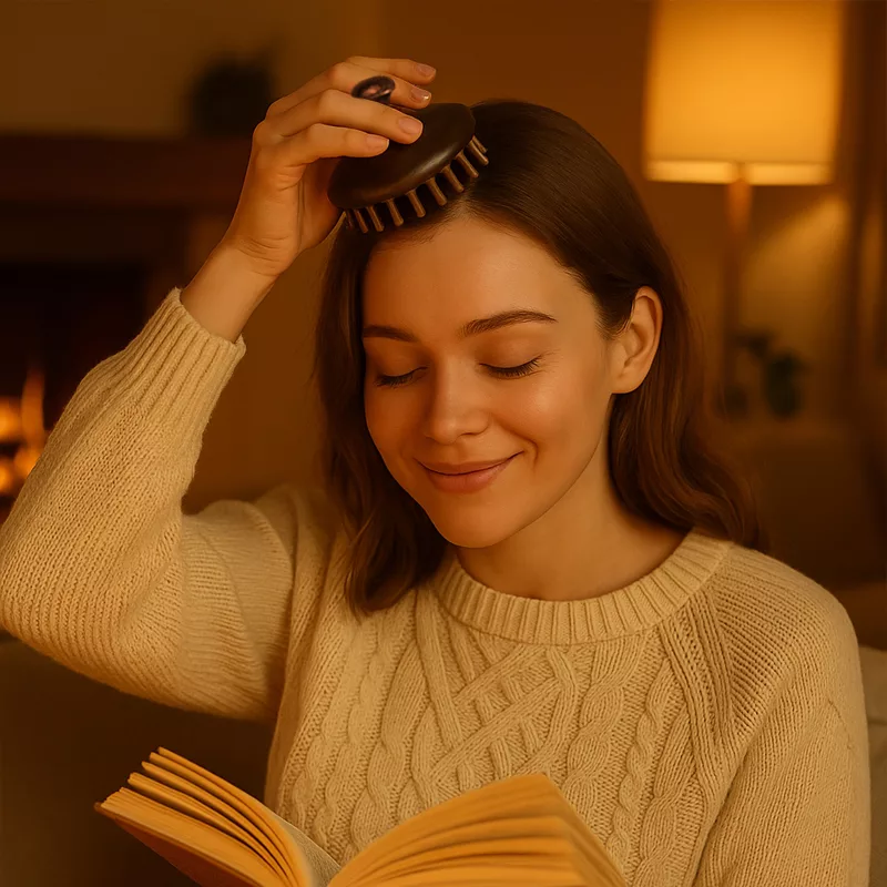 أحمل مدلكة الرأس الخاص بي في كل مكان! الإحساس به على رأسي رائع، وقد أصبح شعري أكثر لمعانًا ونعومة.