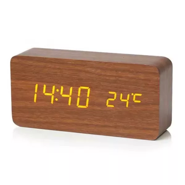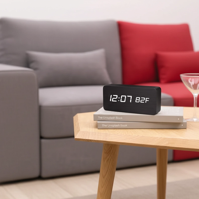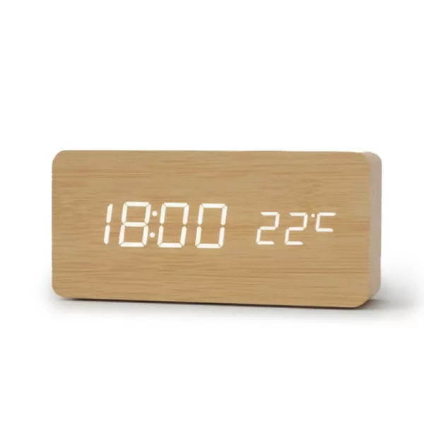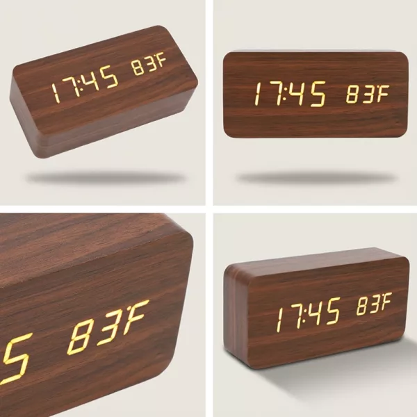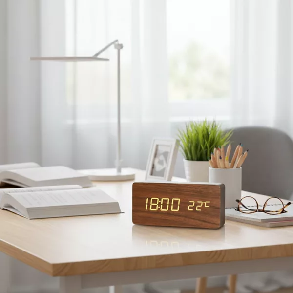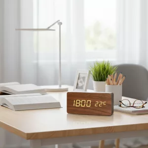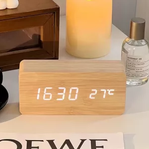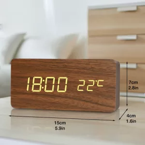 من الرائع أن هذه الساعة تعرض أيضًا درجة حرارة الغرفة. أعتقد أن اللمسة الخشبية تجعل منضدة الليل تبدو أكثر أناقة. سعيدة جدًا بها.