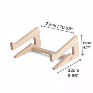 حاملنا الخشبي متوافق مع معظم أحجام أجهزة اللابتوب وأنواع لوحات المفاتيح.