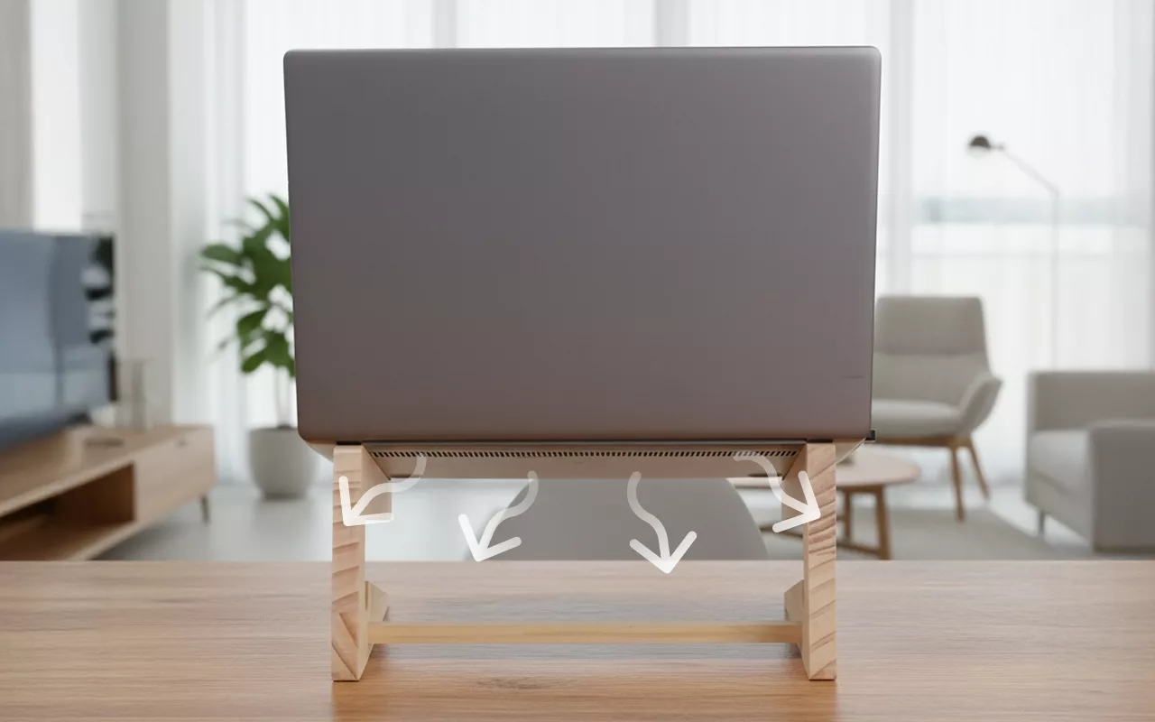يسمح حامل اللابتوب من أورتوريكس بتدفق الهواء بحرية من الأسفل، مما يحافظ على برودة الجهاز. هذا يمنع ارتفاع درجة الحرارة وانخفاض الأداء، وبالتالي يساعد في إطالة عمر الكمبيوتر.