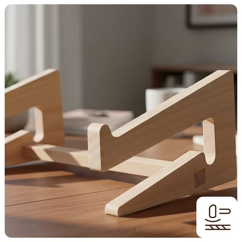 هذا الحامل يتناسب تمامًا مع ديكور غرفتي. يرفع اللابتوب لمستوى مثالي لمكالمات الفيديو وجزء الخشب ناعم وثابت.