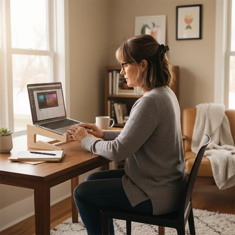 يتناغم حامل أورتوريكس الخشبي بسلاسة مع الديكور الحديث أو الكلاسيكي. يرفع جهاز اللابتوب لتحسين الرؤية وتقليل إجهاد الرقبة.